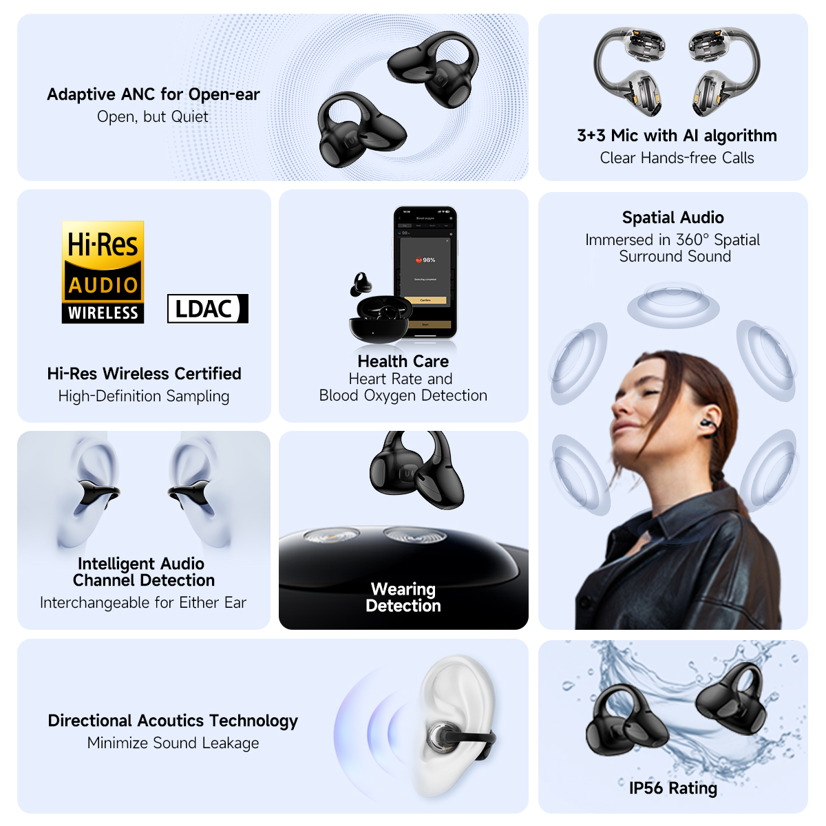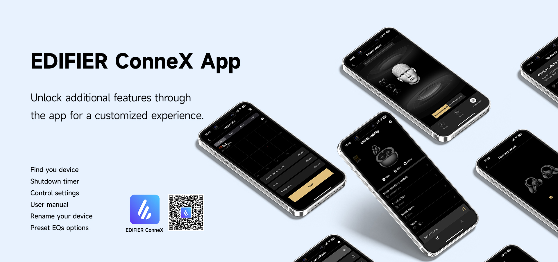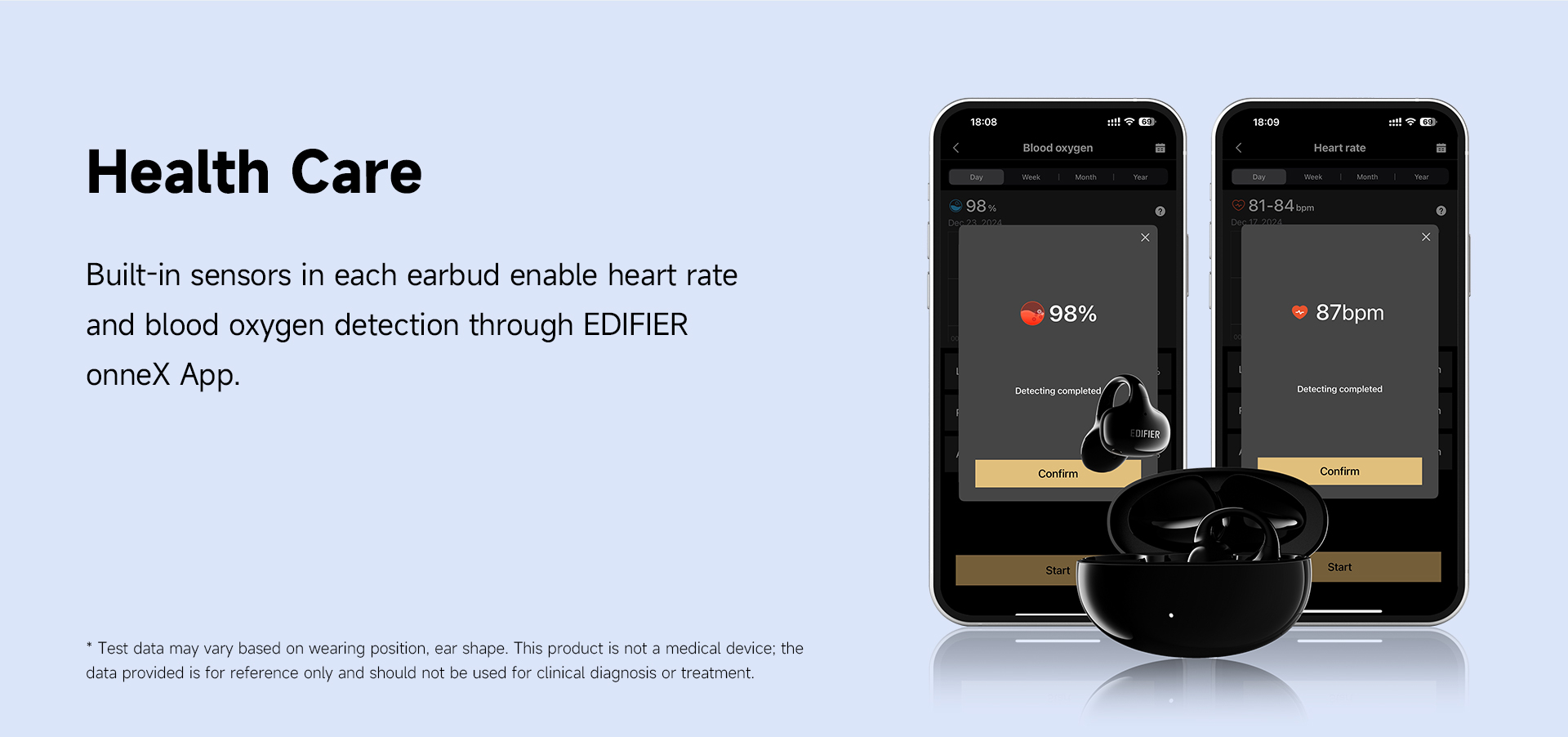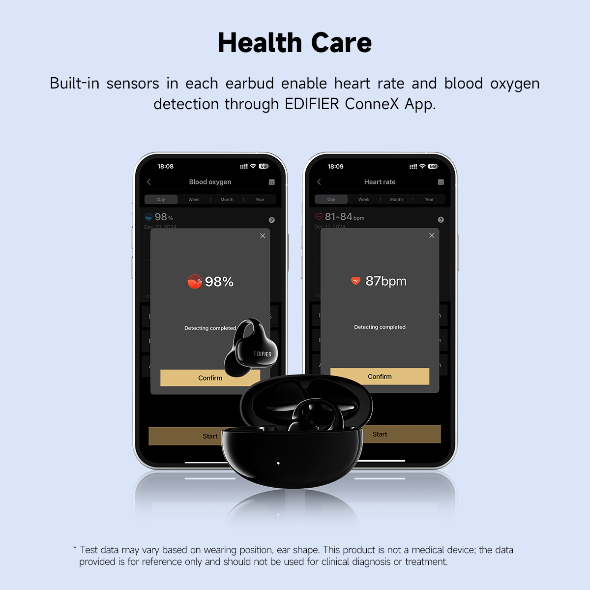 Compatible with the EDIFIER ConneX App for additional functions: heart rate and blood oxygen detection, drainage function, personalize control settings, and more.