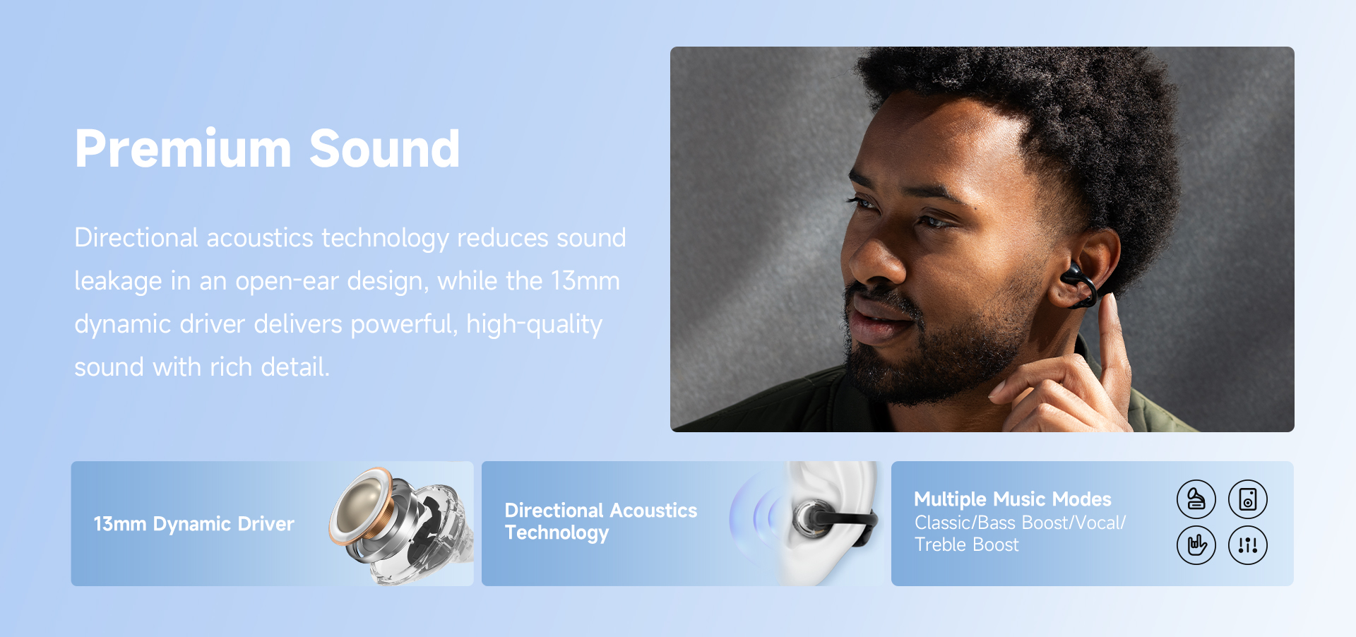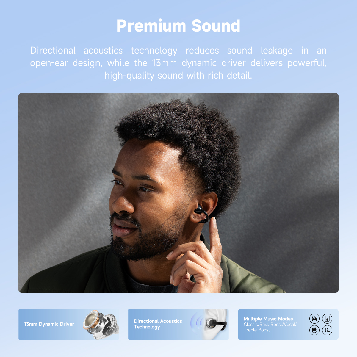 Directional acoustic technology minimizes sound leakage, enhancing sound quality.
