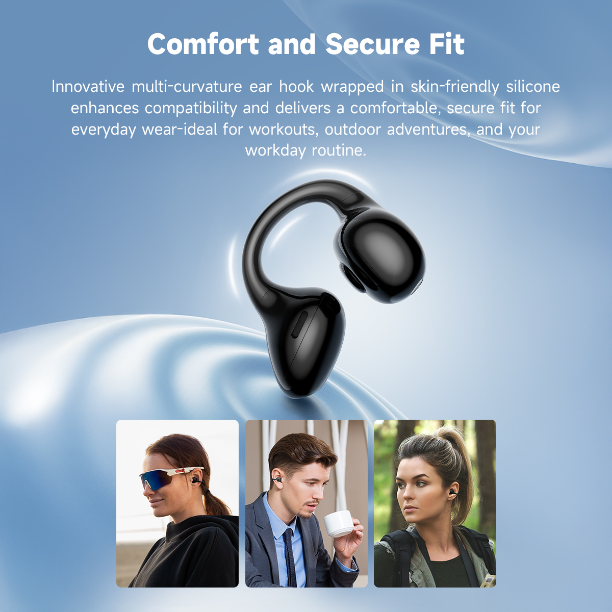 Innovative multicurve earhook enhances compatibility, providing a comfortable and secure fit.