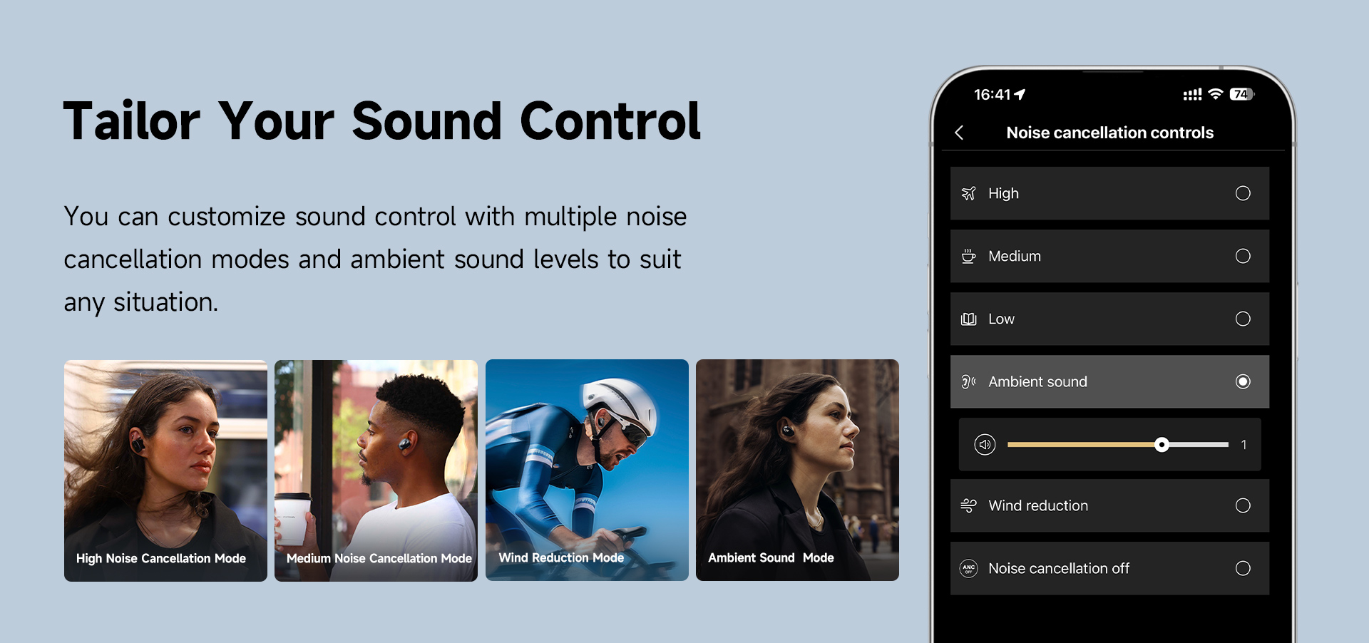 Advanced noise cancelling technology extends the noise cancellation depth to -48dB.