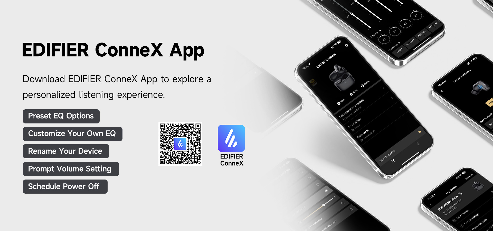 Customized EQ and more controls are available via the EDIFIER ConneX app.