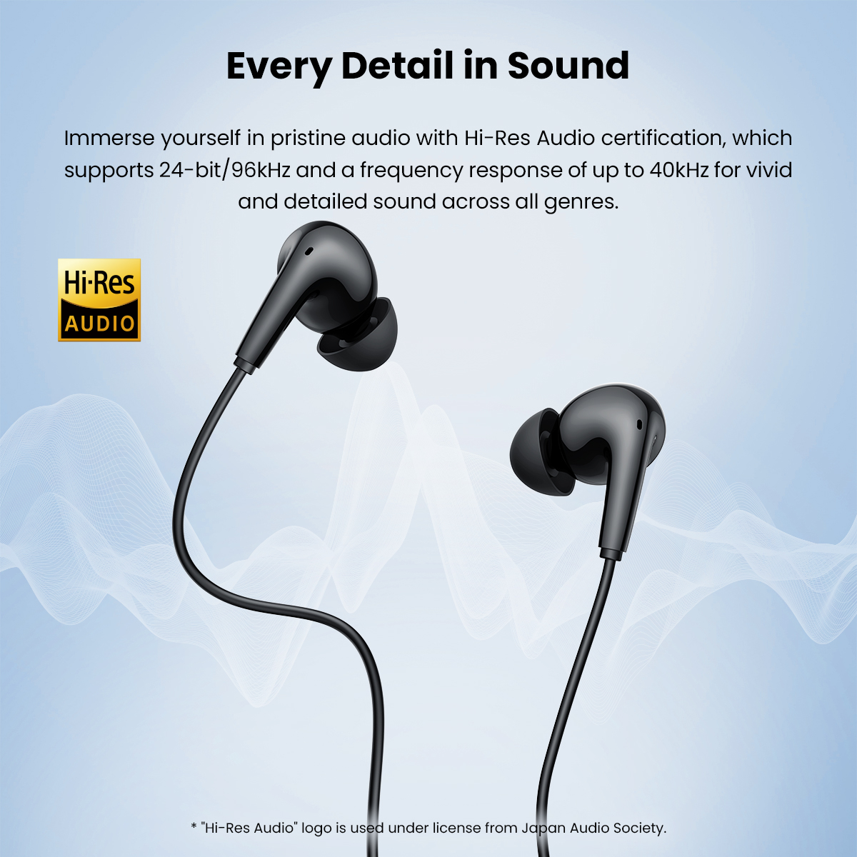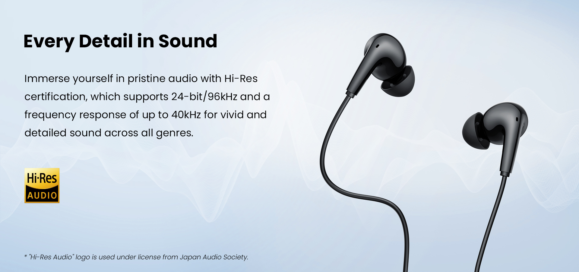 Hi-Res Audio certified with 24-bit/96kHz support and 40kHz frequency response for detailed sound.