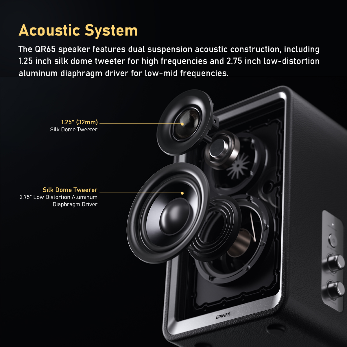 1.25″ silk dome tweeters and 2.75″ long-throw aluminum diaphragm mid-low drivers