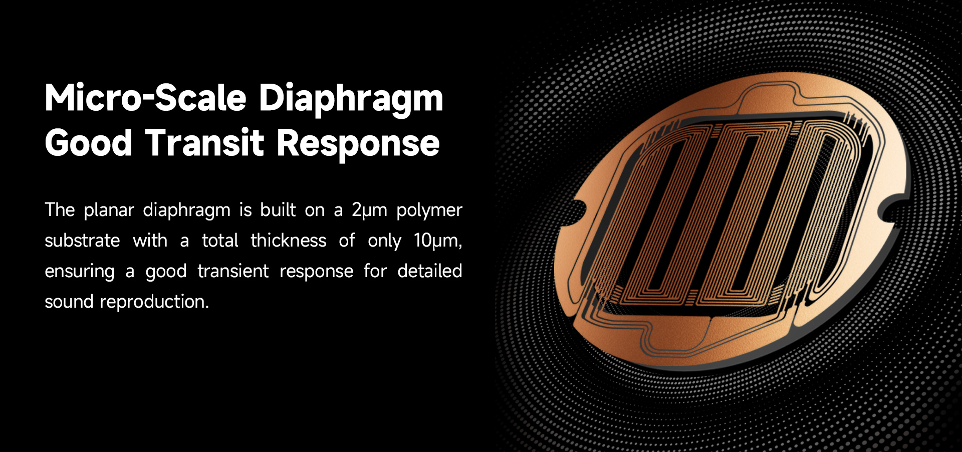 Ultra thin diaphragm 2μm polymer substrate engineered for fast and accurate transient responses.