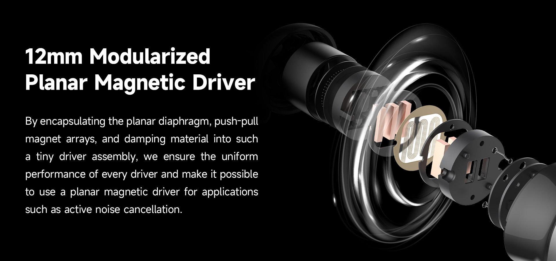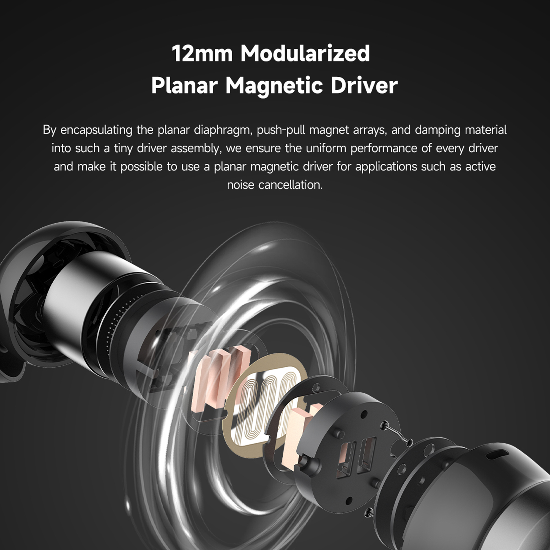 12mm modulized planar magnetic drivers offer uniformed performance and provide the possibility of noise cancellation.