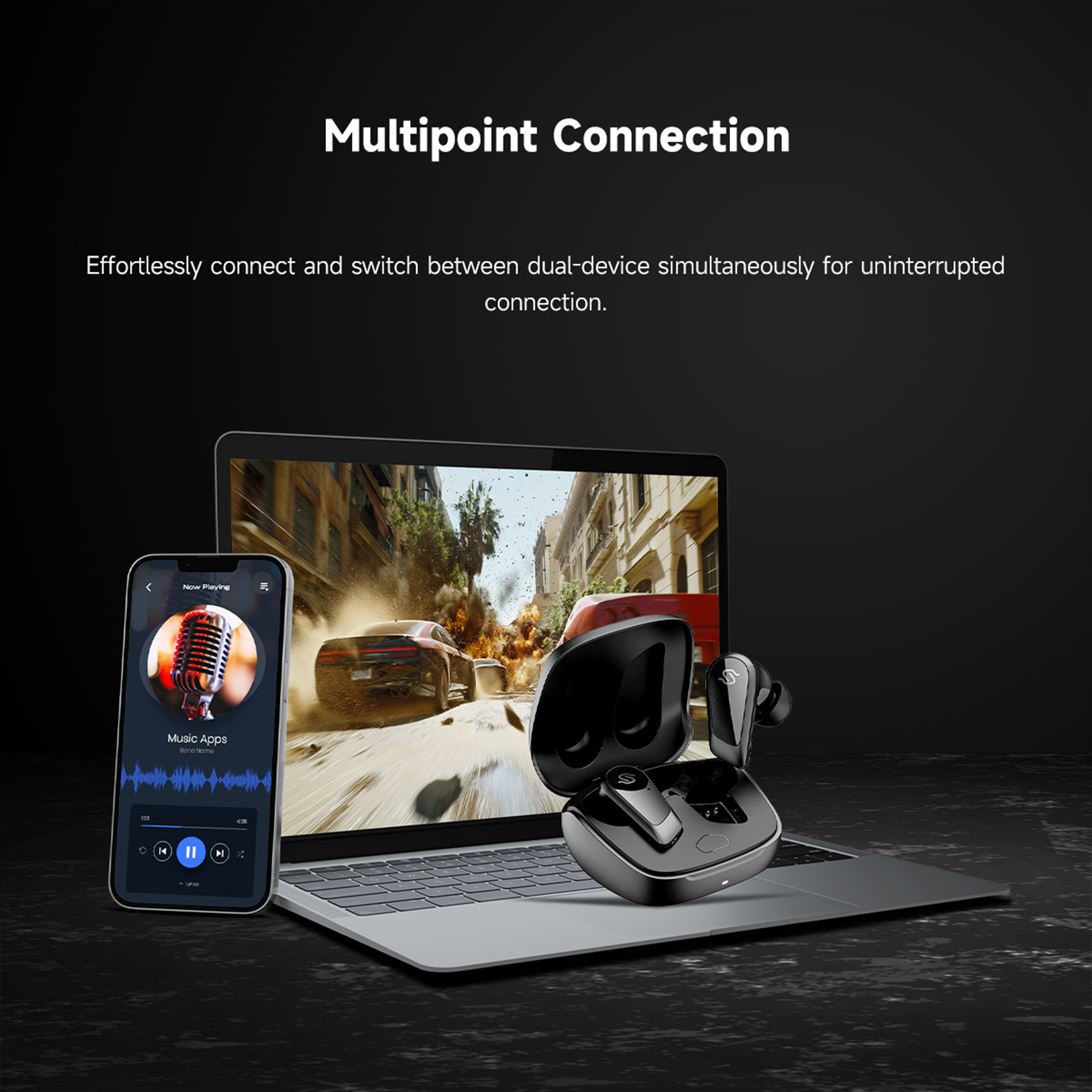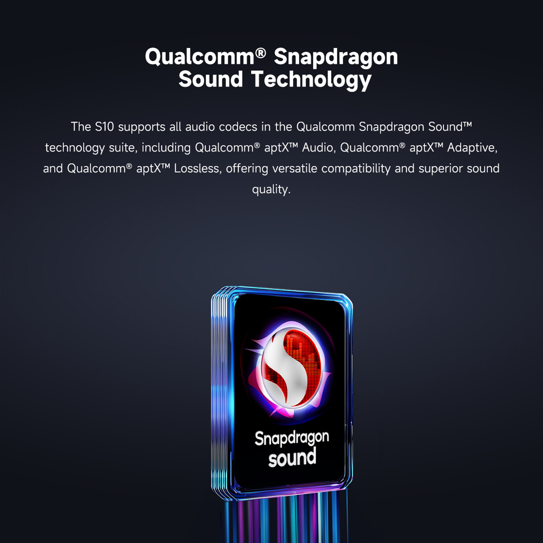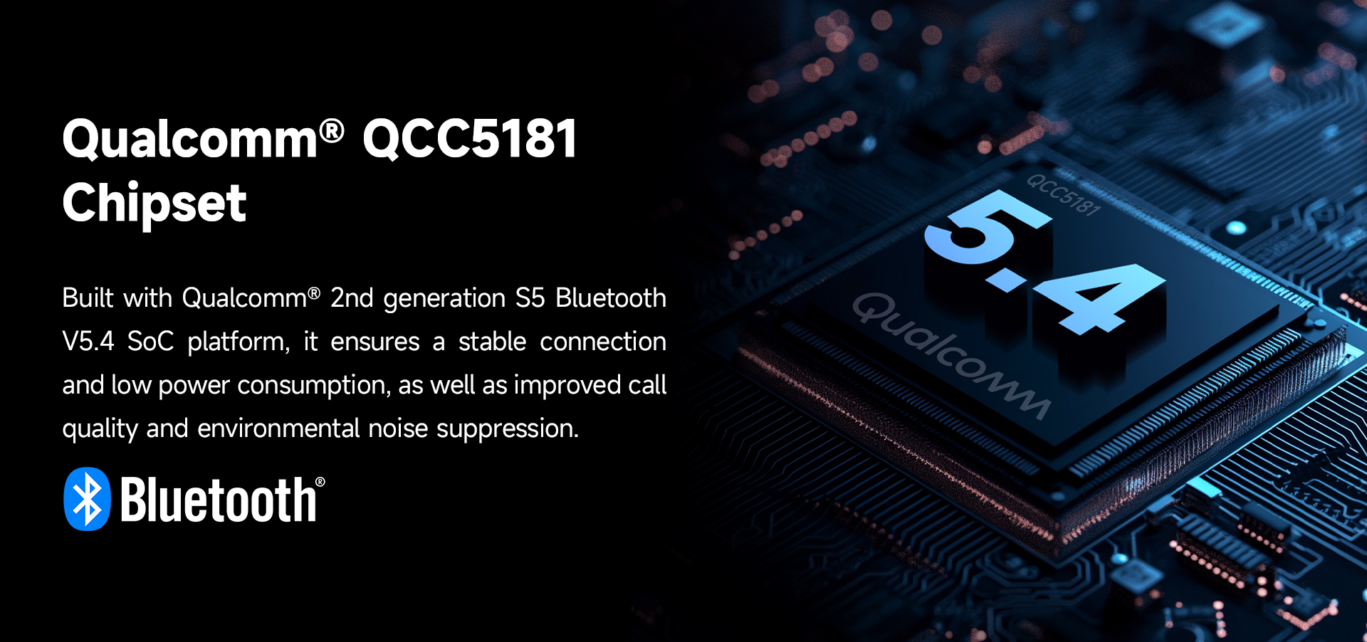 Qualcomm® QCC5181 Bluetooth® SoC with Snapdragon Sound™ technology suite for efficient processing.