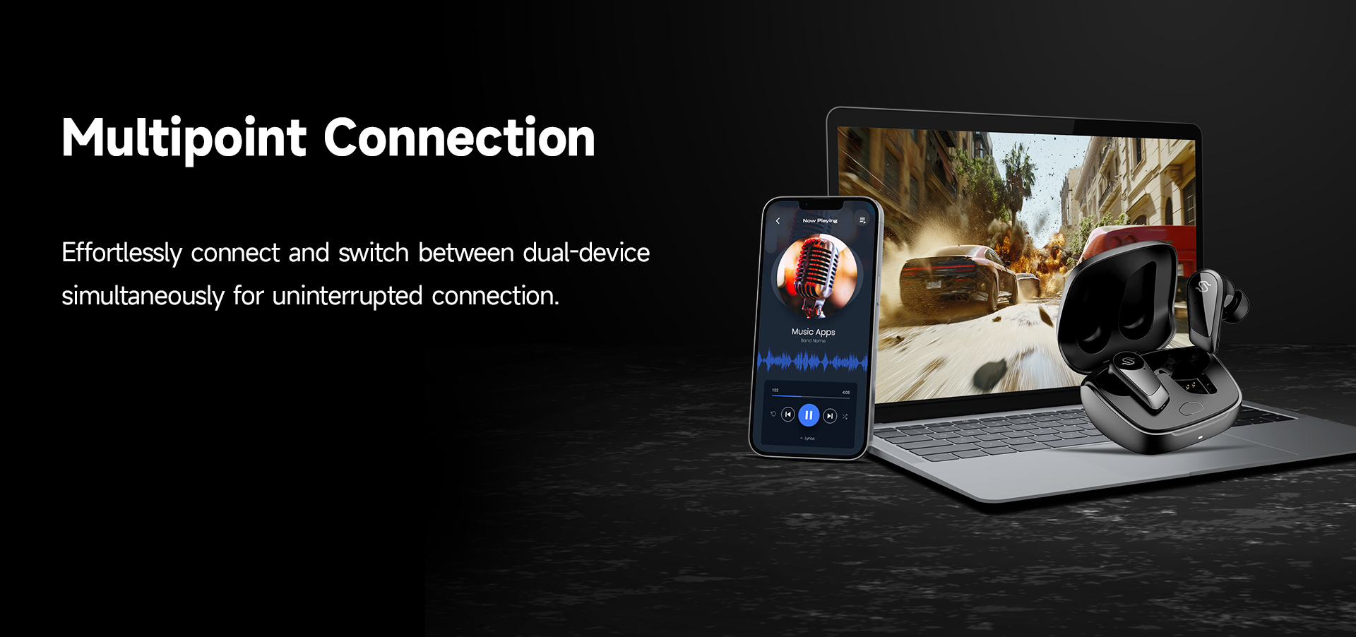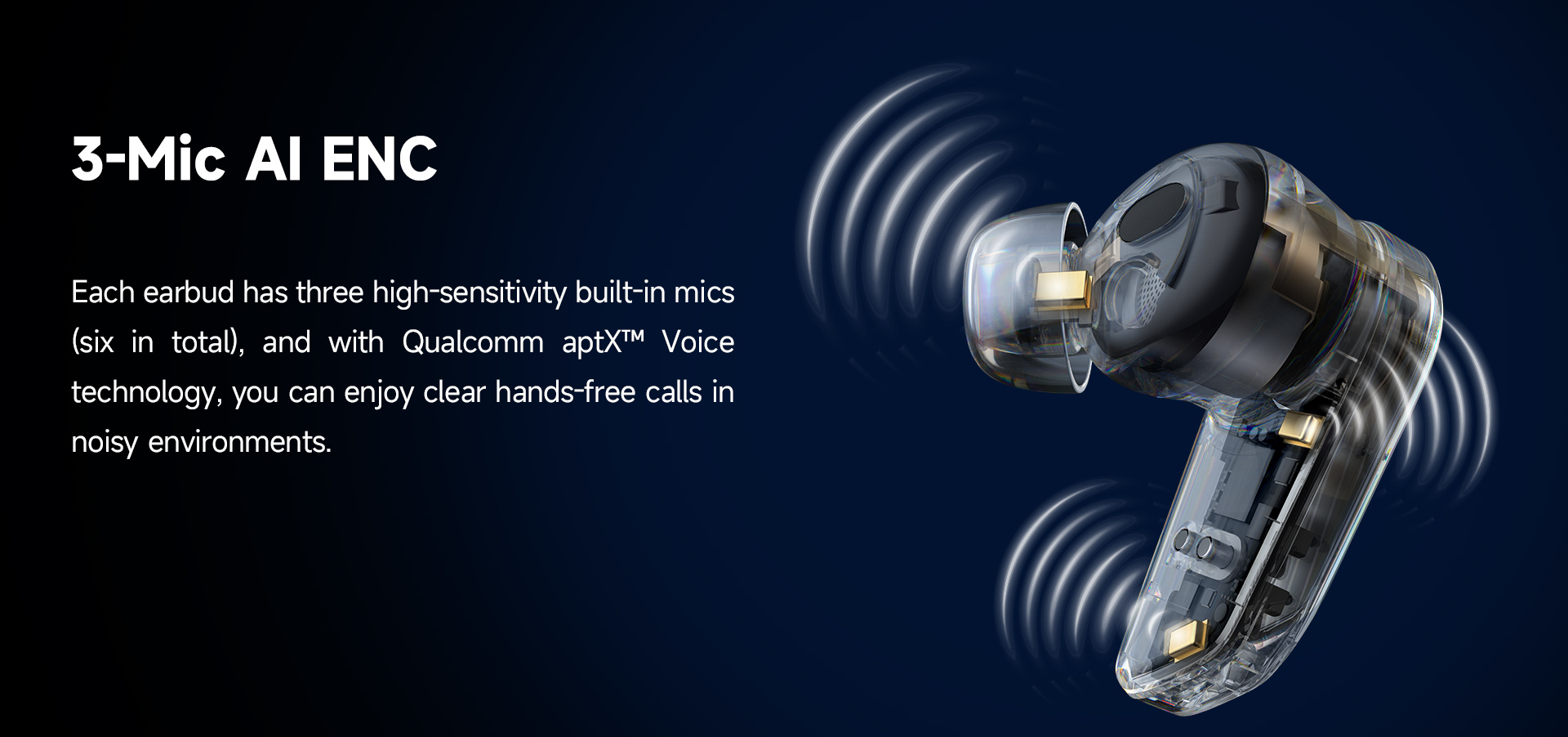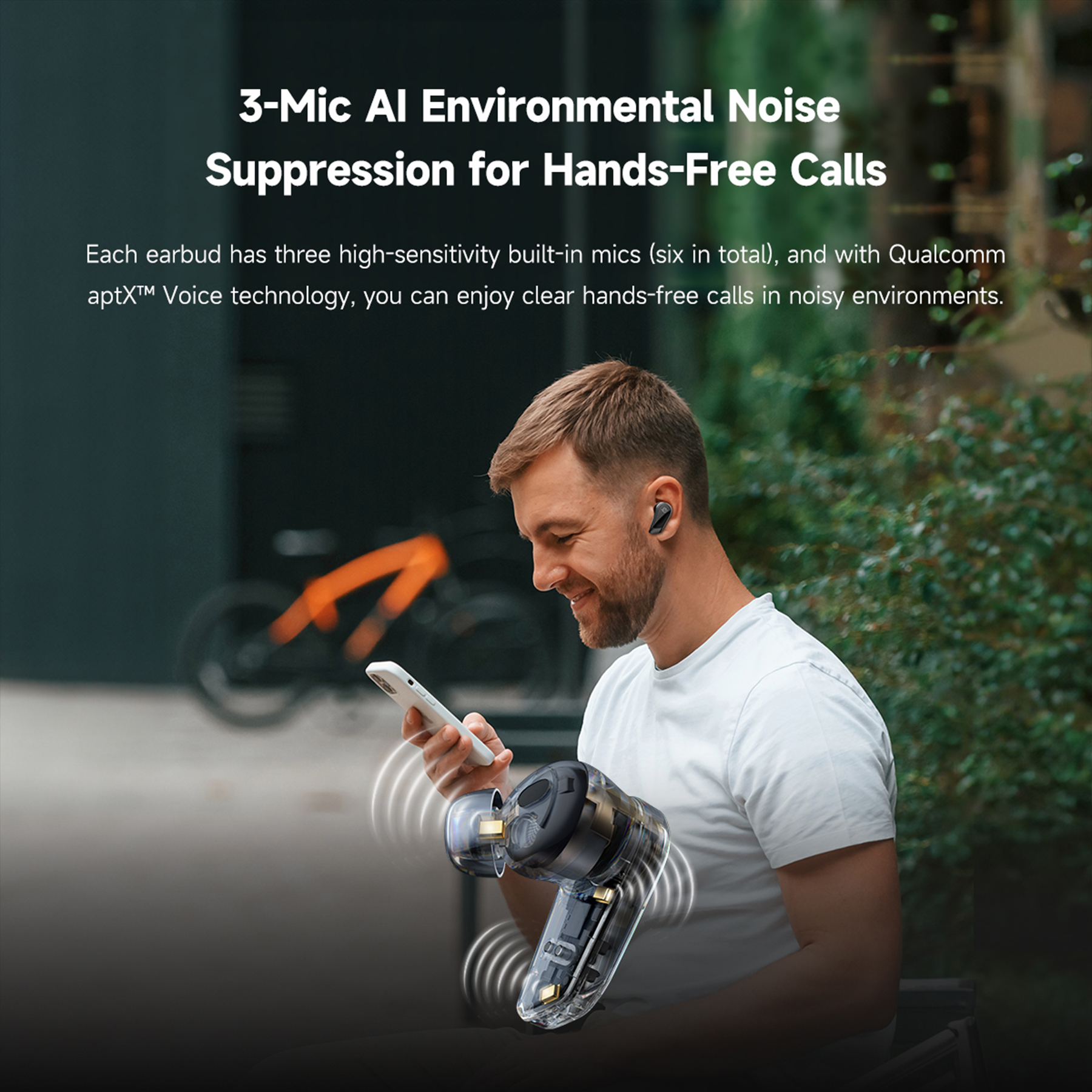 3-mic AI-enabled environmental noise suppression and Qualcomm aptX™ Voice technology ensure clear calls.