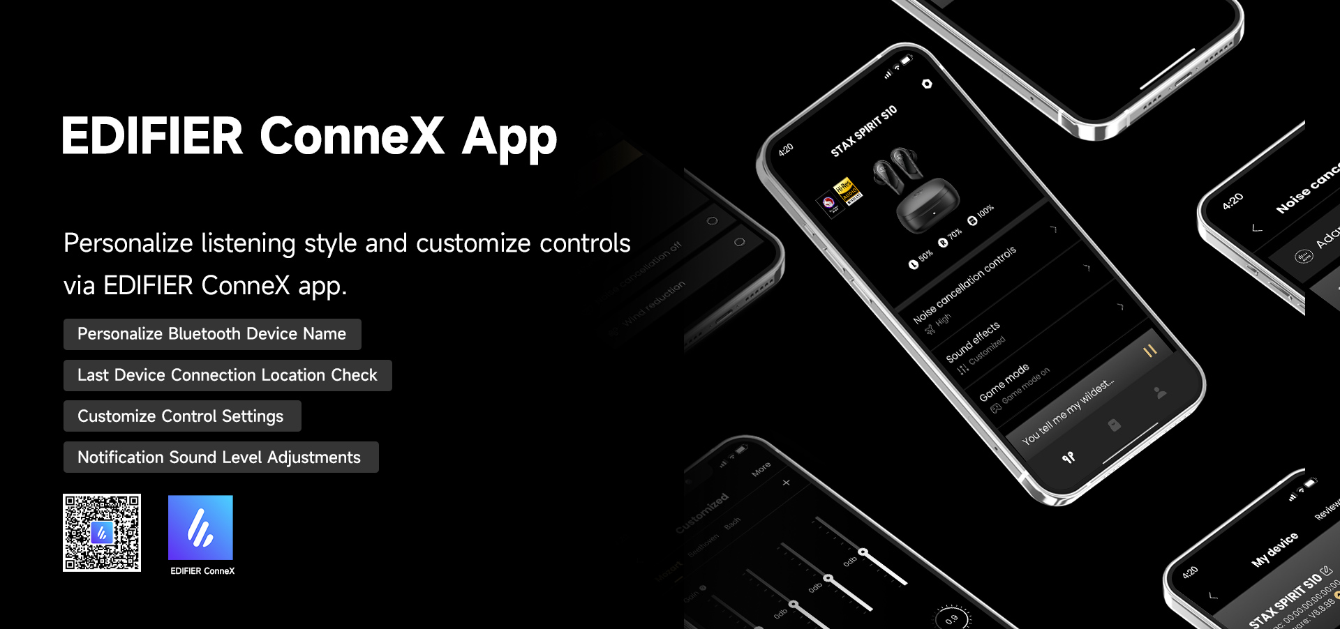 Personalize listening style and customize controls via EDIFIER ConneX app.