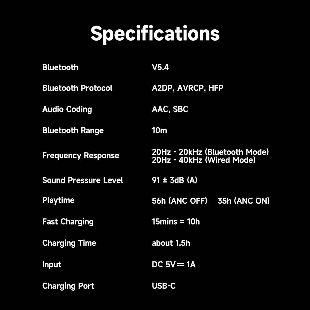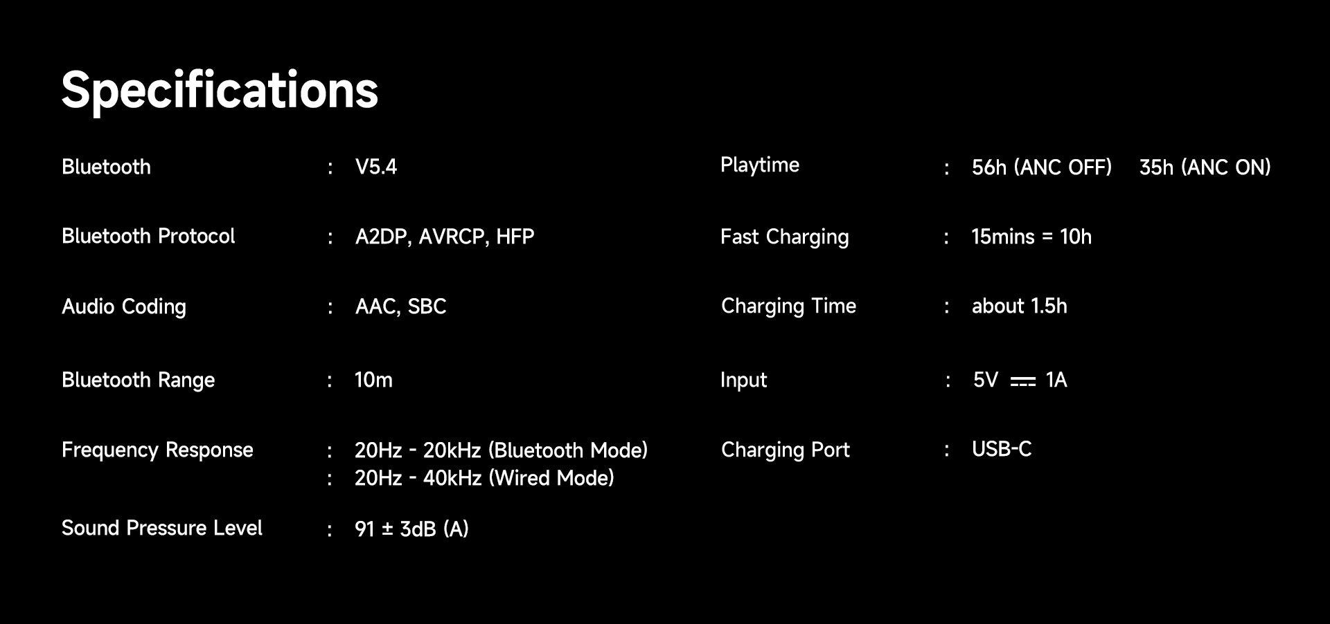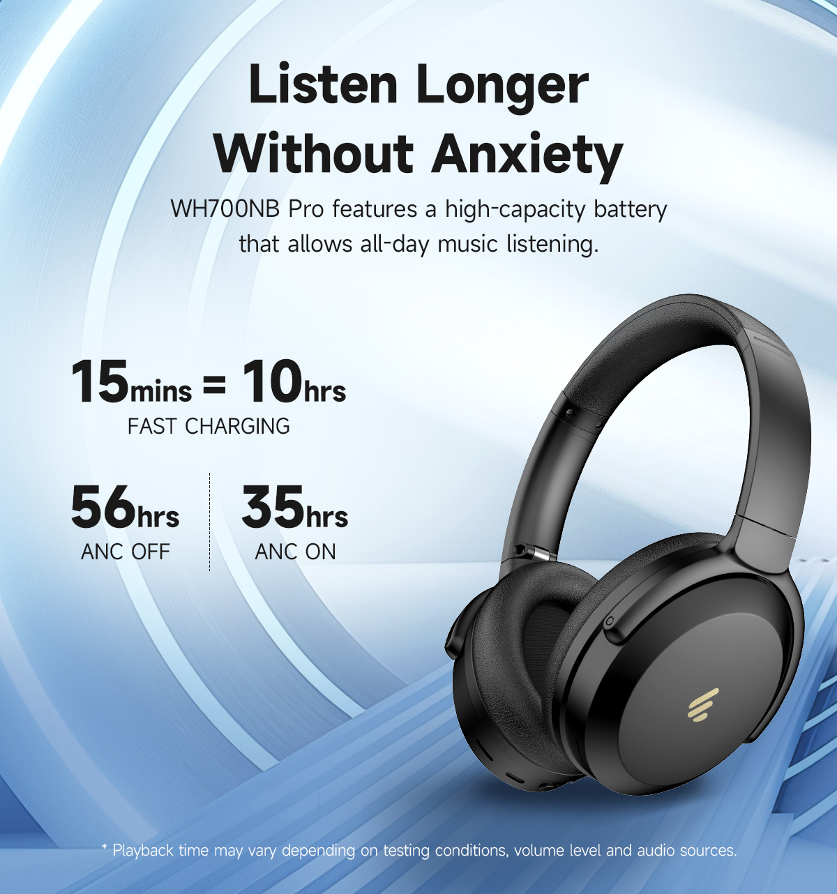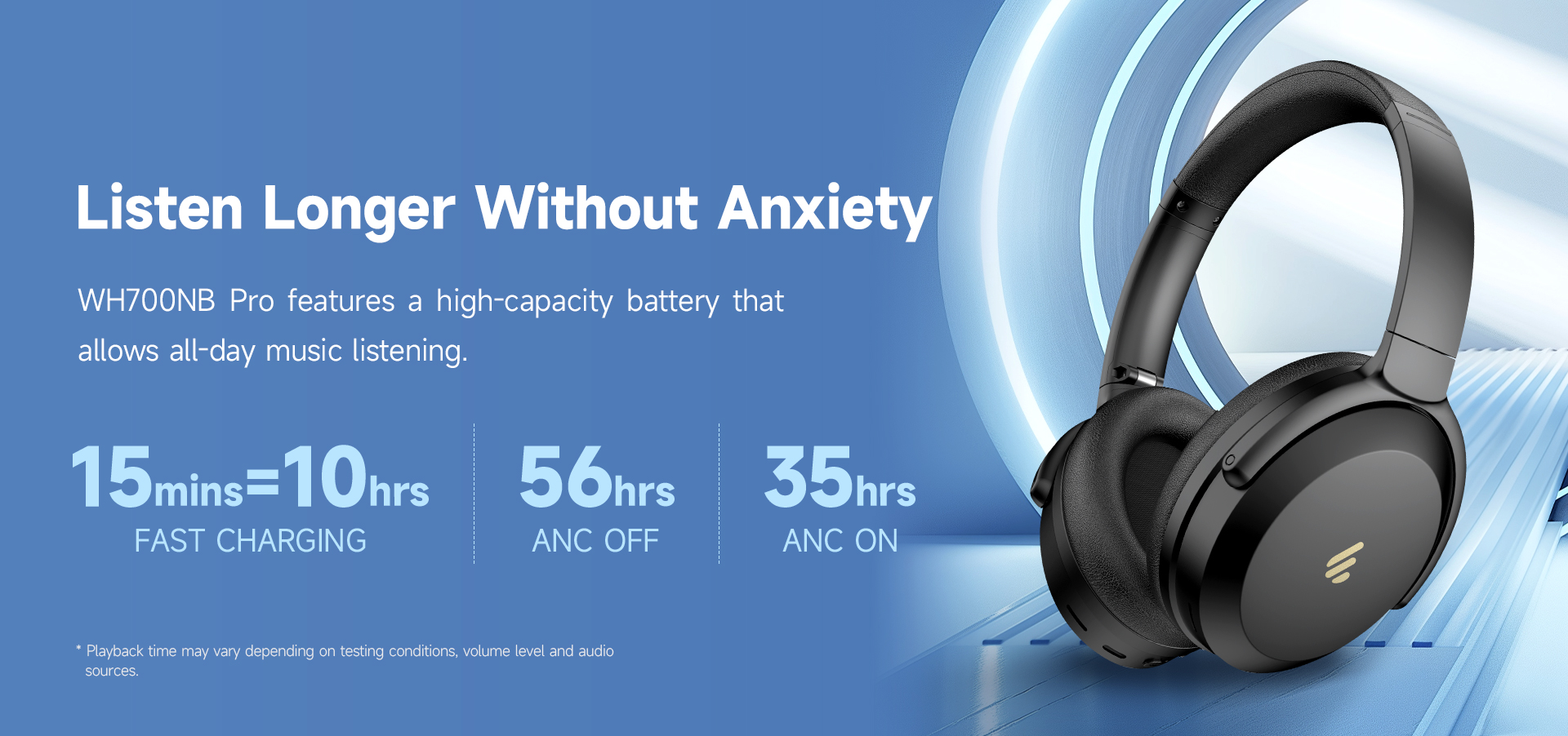 Total 56 hours playtime with fast charging : 15 minutes for 10 hours of use.