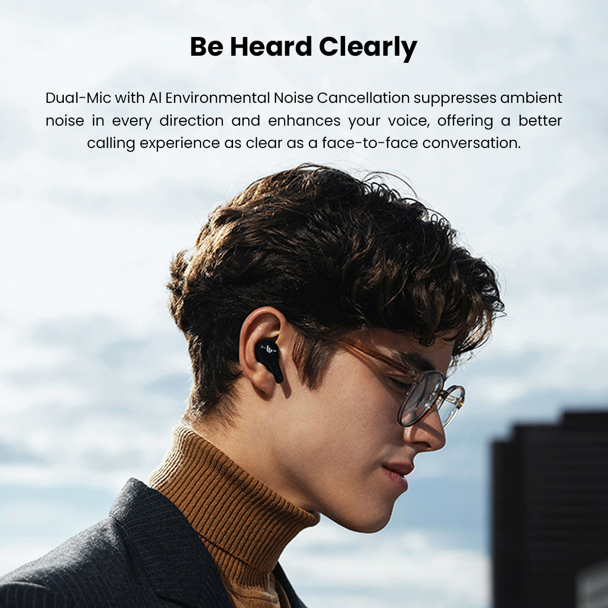 Dual MICs and AI ENC enable clear voice capture and reduce surrounding noise