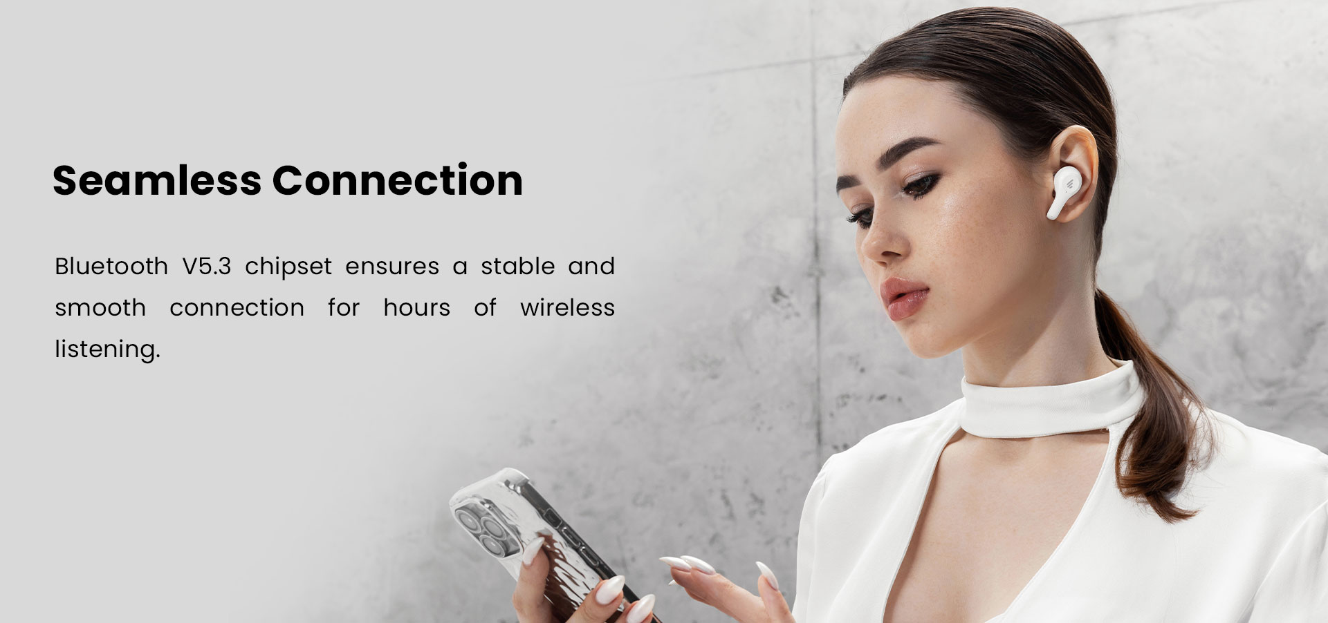 Bluetooth 5.3 technology provides a smooth connection for hours of wireless listening